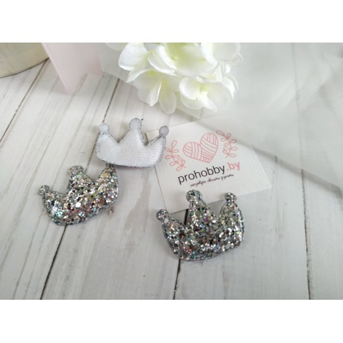 - Патч 3D россыпь пайеток "Корона", 3,7*3,2 см, цвет серебро