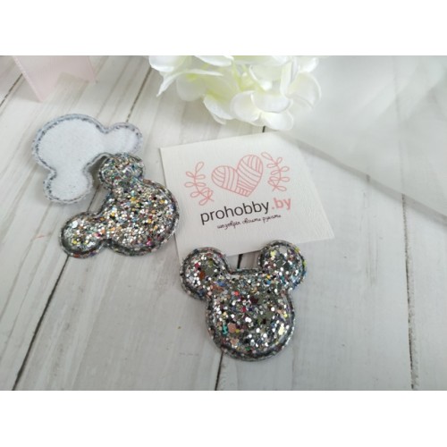 Патч 3D россыпь пайеток "Микки Маус", 4*3,8 см, цвет серебро