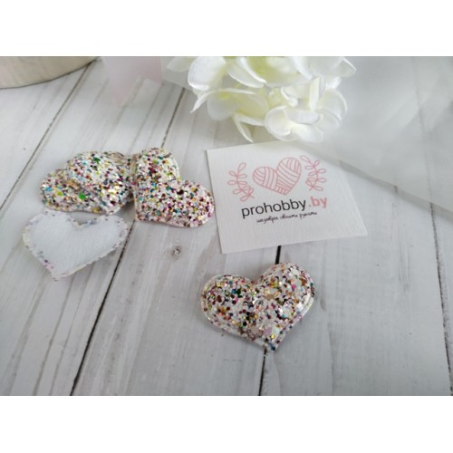 Патч 3D россыпь пайеток "Сердце", 2,8*3,8 см, цвет белый/розовый