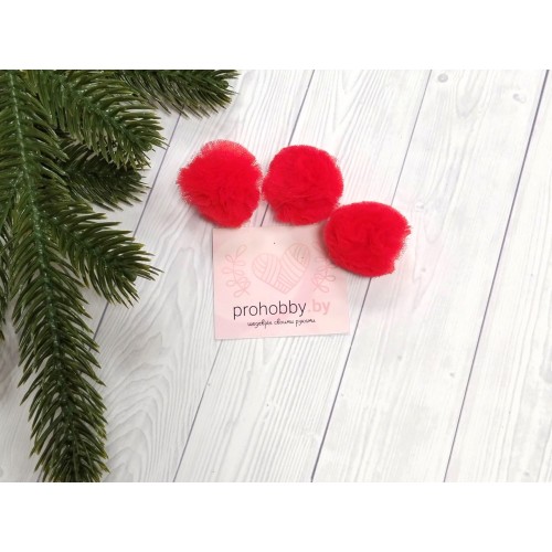 Помпоны-сеточка, 30 мм, цвет красный