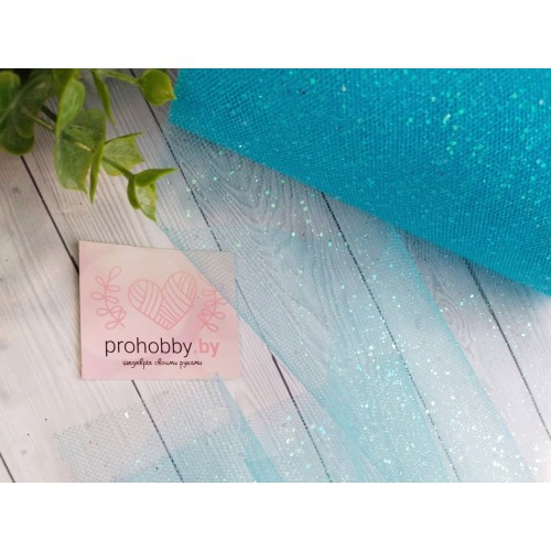 Фатин с блестками, ширина 15 см, цвет голубой №27