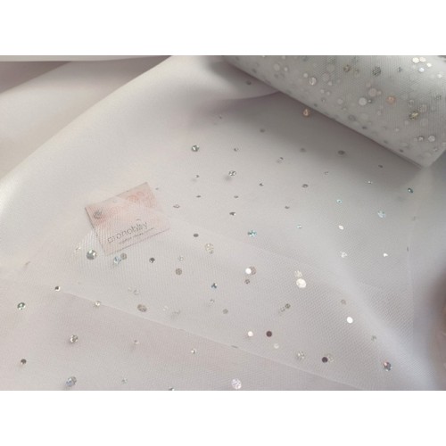 Фатин с пайетками "Горох", ширина 15 см, цвет белый