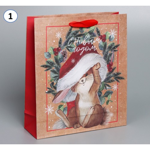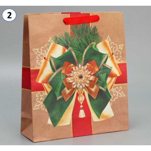 Пакеты новогодние крафтовые, 26*30*9 см, в ассортименте