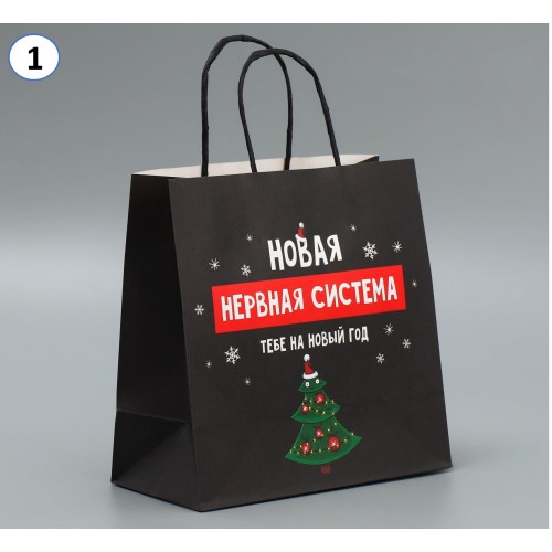 Пакеты подарочные новогодние, 22*22*11 см, в ассортименте