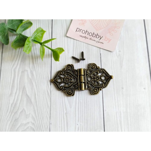 Петля для шкатулки "Узорная с цветами", цвет бронза
