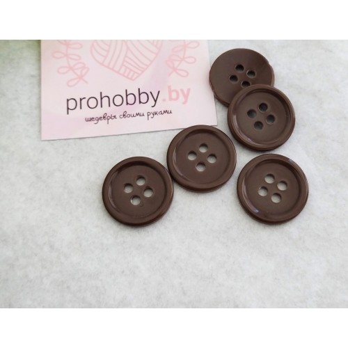 Пуговица классическая, 4 прокола, 17 мм, цвет коричневый