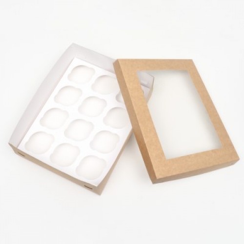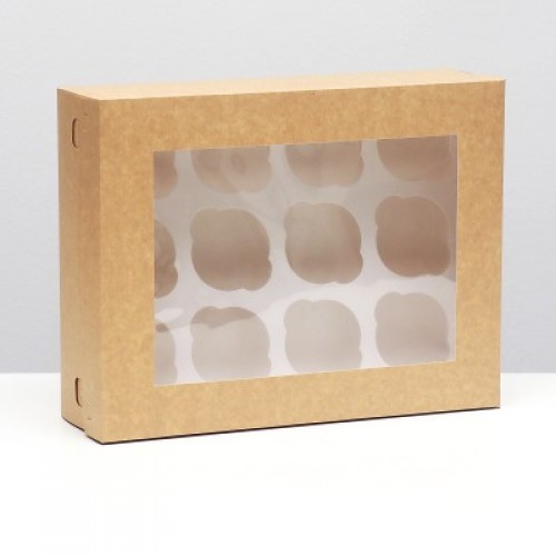 Коробка самосборная на 12 капкейков с прозрачным окошком, 33*25*10 см