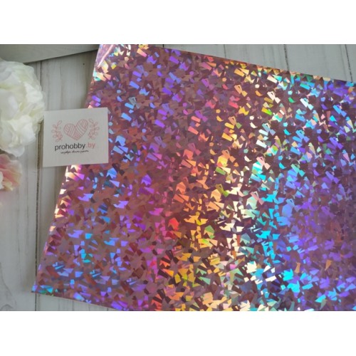 Кожзам голографик "Битое стекло", 22*30 см, цвет светло-розовый