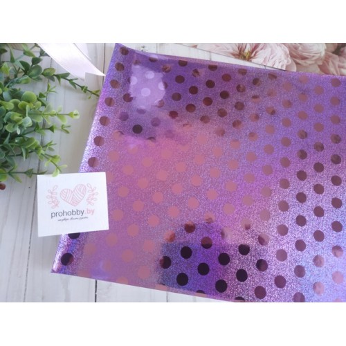 Кожзам голографик "Горох", 22*30 см, цвет сиреневый