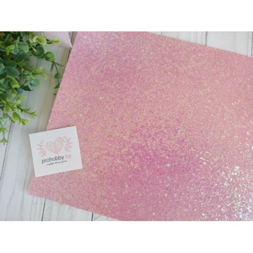 Кожзам с крупными блестками, 22*30 см, цвет розовый перламутровый