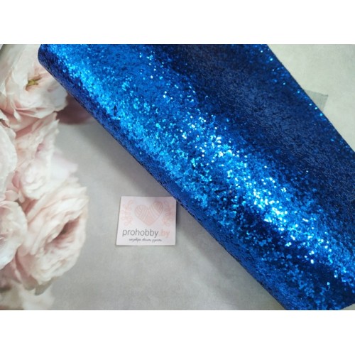 Кожзам с крупными блестками, 21*30 см, цвет синий