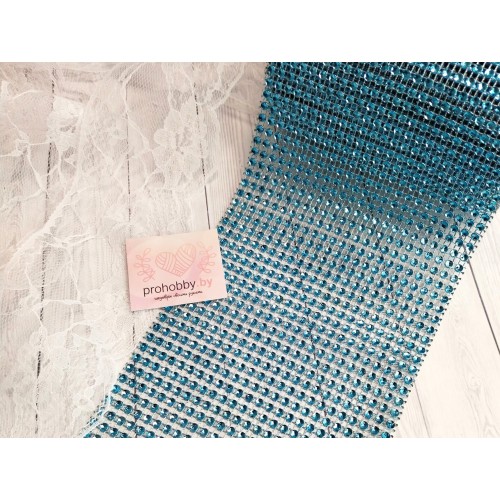 Лента с имитацией страз, ширина 12 см, цвет голубой