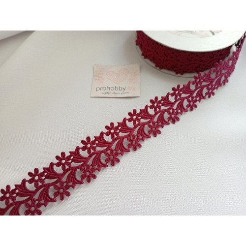 Лента фигурная "Ромашки", 25 мм , цвет бордовый