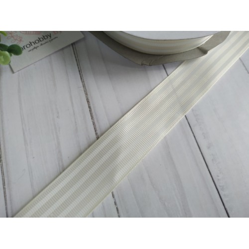 Лента репсовая 25 мм "Белые полоски на кремовом"