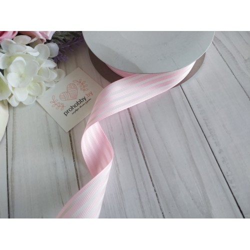 Лента репсовая 25 мм "Белые полоски на нежно-розовом"