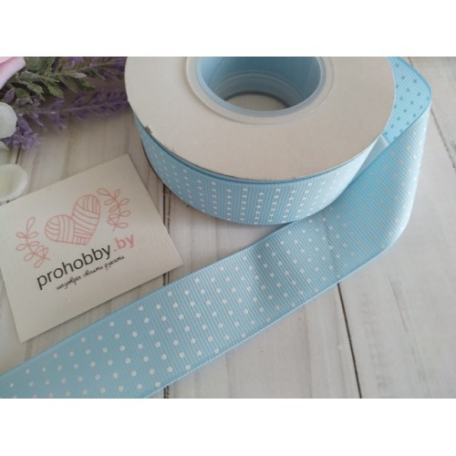 Лента репсовая 25 мм "Мелкий горох на голубом" №184