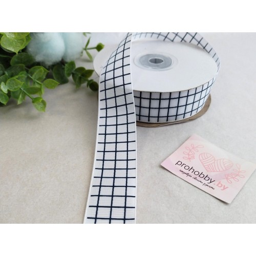 Лента репсовая 25 мм "Синяя клетка на белом"