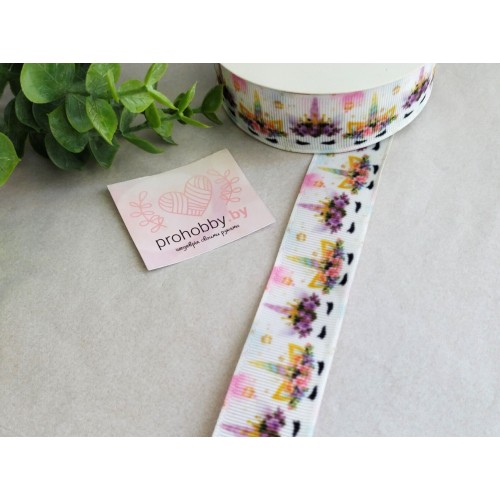Лента репсовая 25 мм с рисунком "Единорог"