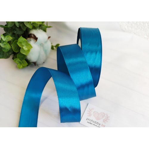 Лента атласная 25 мм, цвет синий 040, катушка 23 м