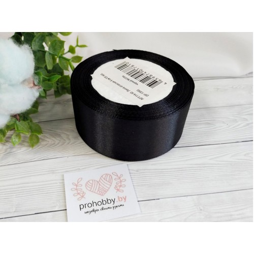 Лента атласная 40 мм, цвет чёрный №039