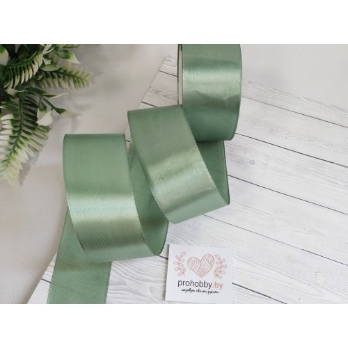 Лента атласная 40 мм, цвет серо-зелёный №065