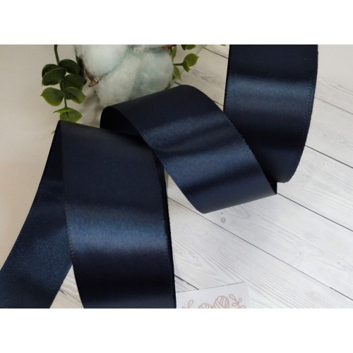 Лента атласная 40 мм, цвет тёмно-синий (иссиня чёрный) №154