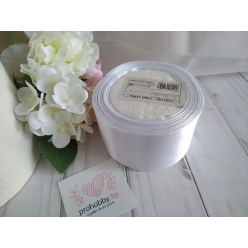 Лента атласная 50 мм, цвет белый, катушка 23 м