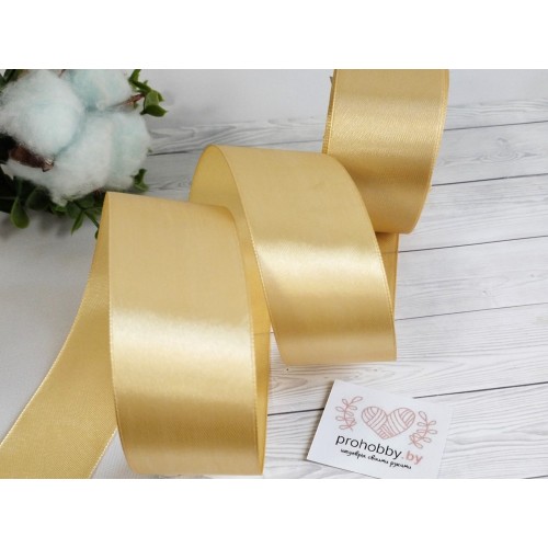 Лента атласная 50 мм, цвет бежевый золотистый №087, катушка 23 м