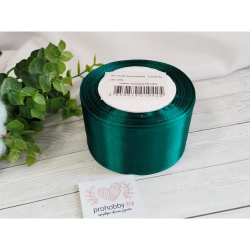 Лента атласная 50 мм, цвет бриллиантовый зелёный №126, катушка 23 м