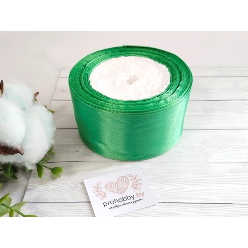 Лента атласная 50 мм, цвет зелёный №075, катушка 23 м