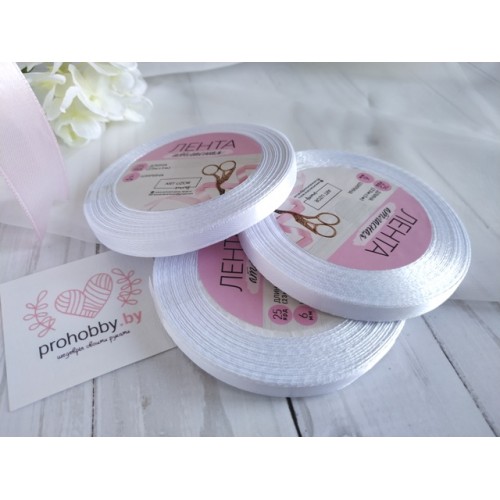 Лента атласная 6 мм, цвет белый, катушка 23 м