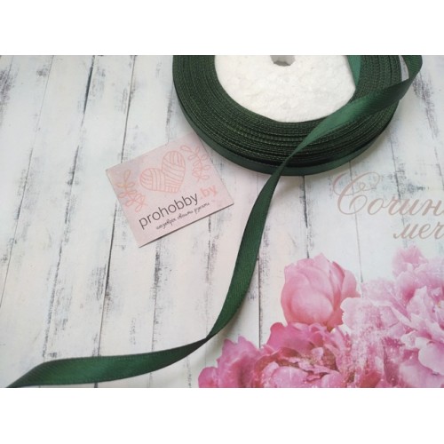 Лента атласная 6 мм, цвет изумрудный темный, катушка 23 м