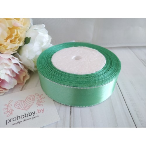 Лента атласная с люрексом 25 мм, цвет тиффани/серебро 054