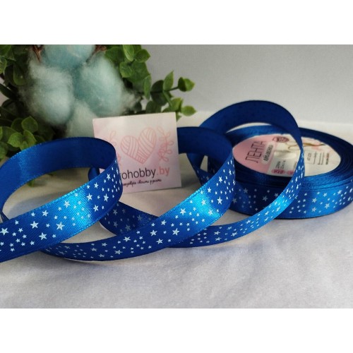 Лента атласная 15 мм "Звёзды", цвет синий №040