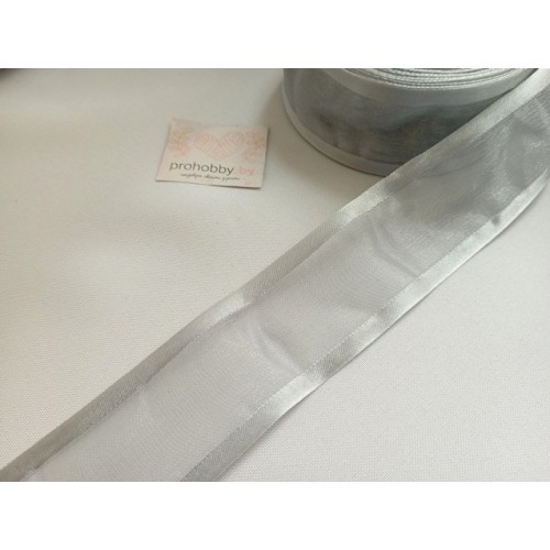 Лента органза с атласными краями 40 мм, цвет серый