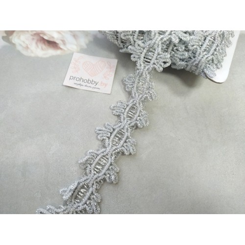 Тесьма декоративная, 35 мм, цвет серебро