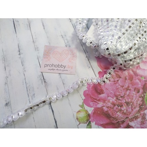 Тесьма отделочная с люрексом, 8 мм, цвет белый/серебро