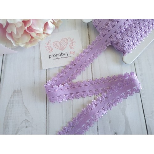 Тесьма-резинка с кружевом, цвет сиреневый