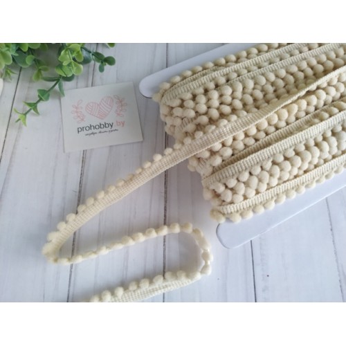 Тесьма с помпонами, 12 мм, цвет кремовый