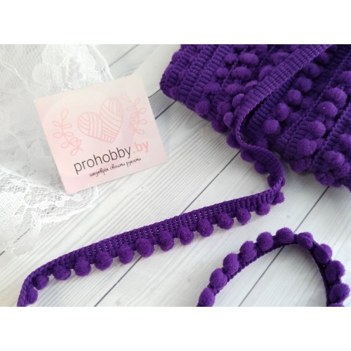 Тесьма с помпонами, 12 мм, цвет фиолетовый