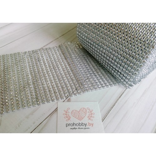 Лента с имитацией страз, ширина 12 см, цвет серебро