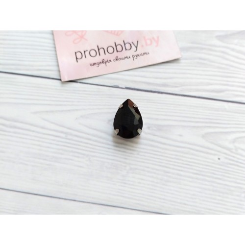 Стразы в цапах пришивные, капля 10*14 см, цвет чёрный в серебре