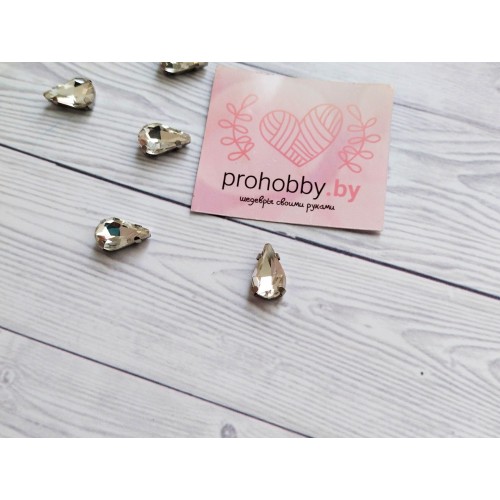 Стразы в цапах пришивные, капля 8*13 см, цвет белый в серебре