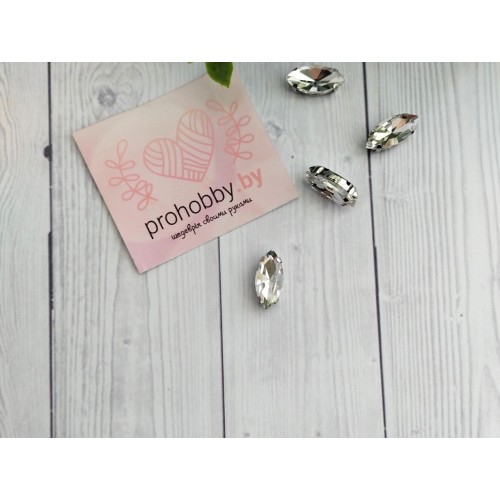 Стразы в цапах пришивные, овал заострённый 15 мм, цвет белый в серебре