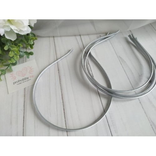 Ободок для волос, металл в атласе, 0,5 см, цвет серый