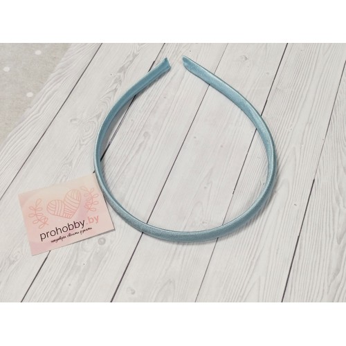 Ободок для волос, пластик в атласе, 1 см, цвет голубой №104